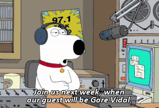 Join us next week, when our guest will be Gore Vidal.