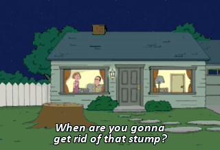 When are you gonna get rid of that stump? I've been asking you for months to get rid of that stump! I'll do it, all right? Just get off my back!