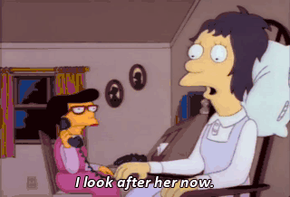 I look after her now. No, Bart, put it down. Put it down, Bart. Bart, put it down. Oh! No all-you-can-eat seafood. I wore my extra-loose pants for nothing.