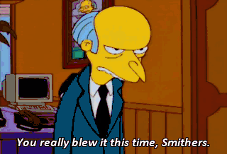 You really blew it this time, Smithers. Stop that! Stop that at once! You're fighting!
