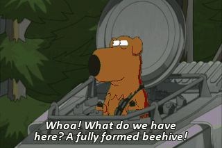 Whoa! What do we have here? A fully formed beehive! Must have taken months to build that guy. Well, guess what? (EXCLAIMS) (GROANING) Oh, God! (SCREAMING) Oh, my God!