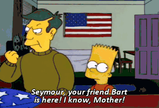 Seymour, your friend Bart is here! I know, Mother! - Seymour, do you want me to tell you when it's 7:30? - No, Mother!