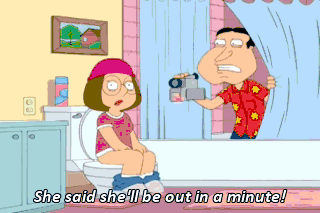 She said she'll be out in a minute! I hope there's another bathroom in here. Oh, God. Oh, thank God, a Porta-Potty. Dad, Mr. Goldman never drank his Ensure.