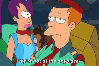 We're not at the anyplace! LEELA: And we're out of fuel! (PASSENGERS CLAMORING) Attention, passengers. Please remain seated until the plane comes to a complete crash.
