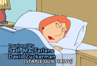 (STAPLE GUN FIRING) Peter, it's 5:30 in the morning. Oh, sorry, Lois. I didn't know you were home.