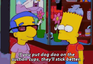 If you put dog doo on the suction cups, they'll stick better. Milhouse, I'm not gonna take dog doo... that's been on the dirty ground and put it on my face.