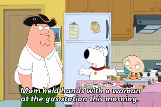 Mom held hands with a woman at the gas station this morning. Don't know what that means. Just reporting it.