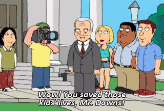 Wow! You saved those kids' lives, Mr. Downs! All in a day's work. Remember, If you ever need me, just blow this whistle or call John Stossel's cell phone. Hugh Downs away!