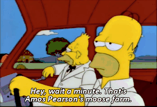 Hey, wait a minute. That's Amos Pearson's moose farm. Make a right here.