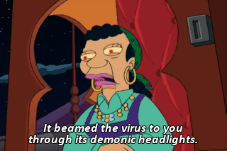 It beamed the virus to you through its demonic headlights.