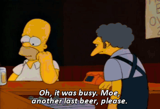Oh, it was busy. Moe, another last beer, please. Guys, keep it down ! I got some last words. I never told you this before, but sometimes when I'm at work, I think of you and smile.