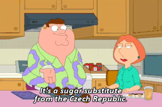 It's a sugar substitute from the Czech Republic. That's right, Spugizakom. (MOCKING)