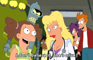 I don't believe it. She's alive! Bender's rhythmic chest compressions restarted her heart. He's a big ol' hero! Hooray!