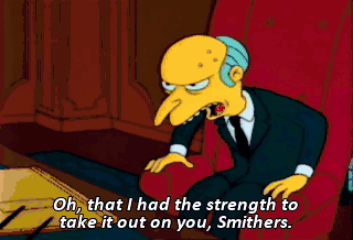 Oh, that I had the strength to take it out on you, Smithers. Now, please go. I would be alone.