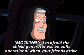 (MOCKINGLY) I'm afraid the shield generator will be quite operational when your friends arrive.