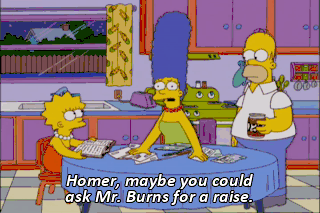 Homer, maybe you could ask Mr. Burns for a raise. Even better, I'll ask him for my job back. I know how we can raise money.