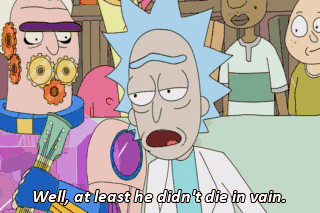 Well, at least he didn't die in vain. He got these crystals. And these babies just saved this lame-ass party! Wubba, Iubba, dub, dub!