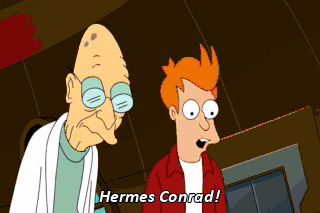 Hermes Conrad! (CRYING) Man! I'm dripping with placenta. Good thing it's Casual Friday. Amy Wong!