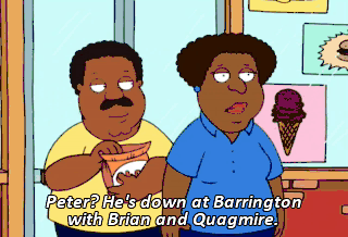 Peter? He's down at Barrington with Brian and Quagmire. He's golfing on our anniversary? Oh, boy! You just put Peter in the doghouse. Which is where your mother-- Don't say it! Your mother smells.