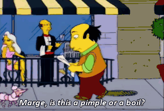 Marge, is this a pimple or a boil? just a minute, Homer. Oh! Look what you made me write! Anyway, we think you'll really enjoy our quiet little town.