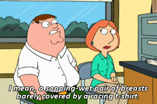 I mean, a sopping-wet pair of breasts barely covered by a racing t-shirt.