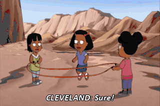 CLEVELAND: Sure! Here I am on Tatooine Jumping Double Dutch like you never seen I know my way around a rope LOIS: Help me, Obi-Wan You're my only hope