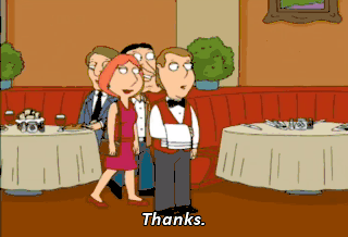 No, no, No. I--i-- We-- I wouldn't bring-- Uh, glass of wine.