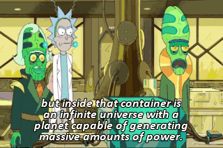 but inside that container is an infinite universe with a planet capable of generating massive amounts of power.