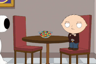 Stewie, there's no need to... Ooh! I said no gray M&M's. These are all gray. Don't worry, Brian. I've got it all under control. You're a big canine star.