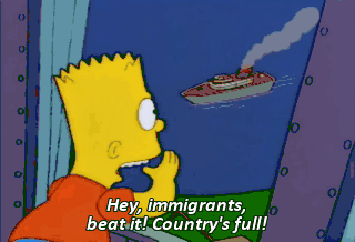 Hey, immigrants, beat it! Country's full! Okay, folks. You heard the lady.