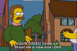 I'm so scared. Ned Flanders is pointing a gun at me!