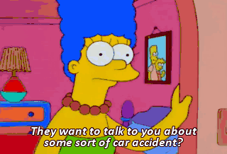 They want to talk to you about some sort of car accident? Take the kids out back. I'll handle this. Mr. Simpson? I believe something of yours struck my car yesterday. Oh, yeah? Prove it!