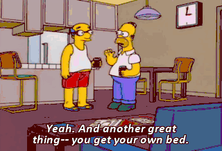 Yeah. And another great thing-- you get your own bed. Uh, I sleep in a racing car. Do you? I sleep in a big bed with my wife. Oh, yeah.