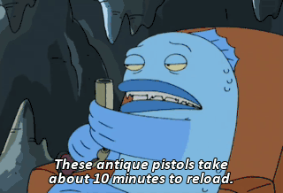 These antique pistols take about 10 minutes to reload.