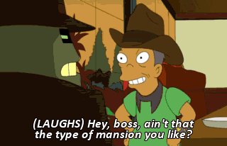 (LAUGHS) Hey, boss, ain't that the type of mansion you like? Amy, the Mafia took everything we had. Our casino, our home, and our collection of rare servants.