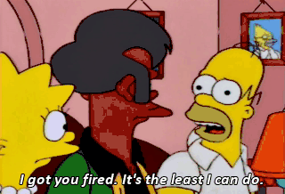 I got you fired. It's the least I can do. Well, the least I can do is absolutely nothing. But I'll go you one better and come along.