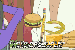 Wow! Hey, everybody Let's give it up for the grillmaster Rick! Rick! Rick! Rick! Wait.