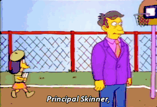 Principal Skinner, one of my fellow children is vandalizing school property. Oh ? Where ? Over there, sir. See ? Look out, Bart. Here comes Skinner. Yikes ! Hmm. Whoever did this is in very deep trouble.