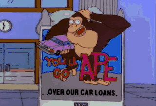 You'll feel better knowing your money's... - in the hands of professionals. - "ook, ook." Are you folks ready to go ape? Mom? A professional in an ape mask is still a professional.