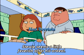 Stewie seems a little feverish after his ordeal. And he keeps asking for pancakes. Hmm, Let's just let him rest.