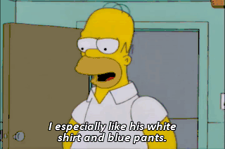 I especially like his white shirt and blue pants. Wait a second. Angry Dad is me.