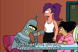 I try to get out, but they keep pullin' me back in! Wangle a new dangle on life No, Bender! The other way! I like him better this way. I'm sad now. Eh, it's fine.
