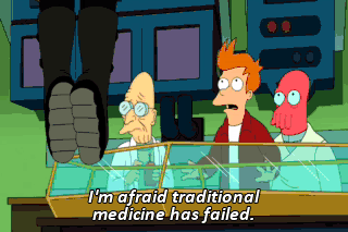 I'm afraid traditional medicine has failed. No! I refuse to give up! Wake up, Leela! I love you! Fry, stop. She's gone.