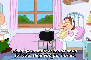 Meg, your mother made soup for you. Here you go, honey. (SCREAMS) Well, you know who does love you? The Lord.