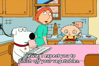 Stewie, I expect you to finish off your vegetables.