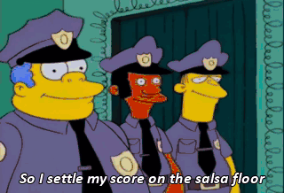 So I settle my score on the salsa floor With this vengeful Latin rhythm Burns Con el corazÓn de perro SeÑor Burns