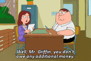Well, Mr. Griffin, you don't owe any additional money. But unfortunately, you're not entitled to a refund. ahhh! Mr. Griffin, are you ok? I-i'm Sorry, I still haven't gotten over the loss of Party oF 5.