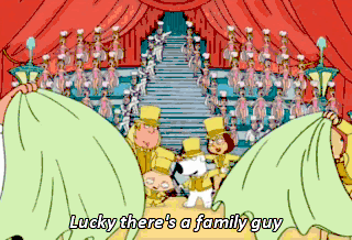 Lucky there's a family guy Lucky there's a man who positively can do all the things that make us laugh and cry He's a family guy