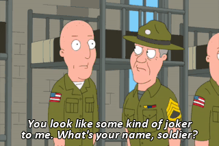 You look like some kind of joker to me. What's your name, soldier?