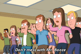 Don't mess with Mr. Booze That's what he said, now Don't mess with Mr. Booze Oh, Mr. Booze Don't mess with Mr. Booze